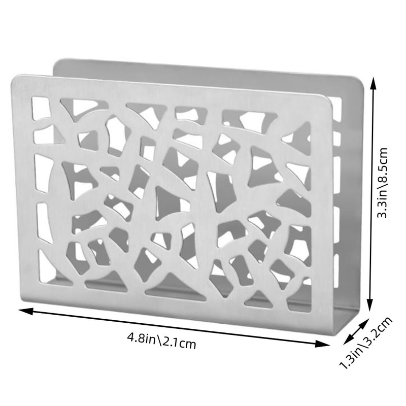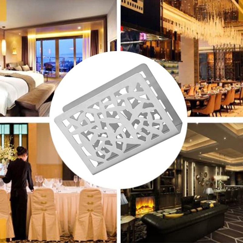 NA Napkin Holder Hollow Design Stainless Steel Freestanding Serviette Holder Napkin Dispenser Dining Table Countertop Napkin Rack for Table Silver