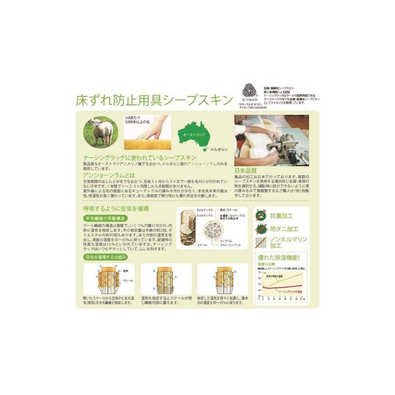 - Material: (Surface) Sheepskin (filling) Urethane cushion (back) nylon fabric with Velcro tape