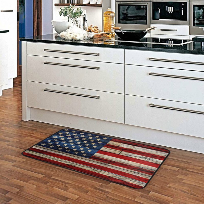 Naanle 4th of July Kitchen Floor Mat Wooden American Flag Non Slip Absorbent Comfort Standing Mat Kitchen Runner Rug for Hallway Entryway Bathroom Living Room Bedroom 39 x 20 Inches