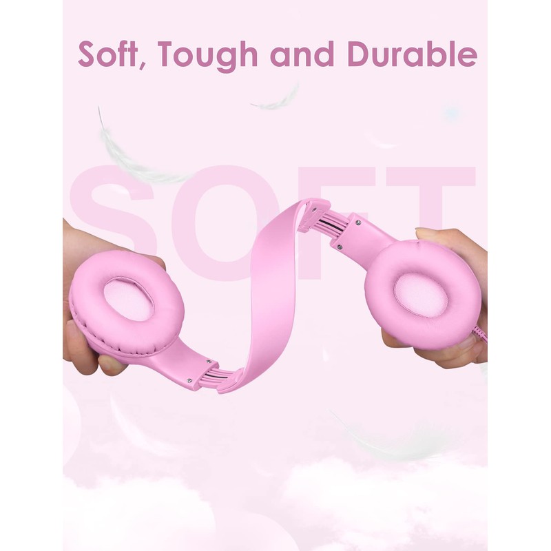 • 【Wide Compatibility & Durability】These Over-Ear girls headphones with 3.5mm plug for most devices, such as iPhone, Chromebooks, Androids, iPad, Kindle Fire, Switch, Laptops, Tablets, PC. This cable consists of a strong nylon braid to prevent tangling. A tough stainless steel support is used in the headband, which can be restored to its original shape after any twist and bend. No matter how the child uses them or places them randomly, they will not be easily damaged