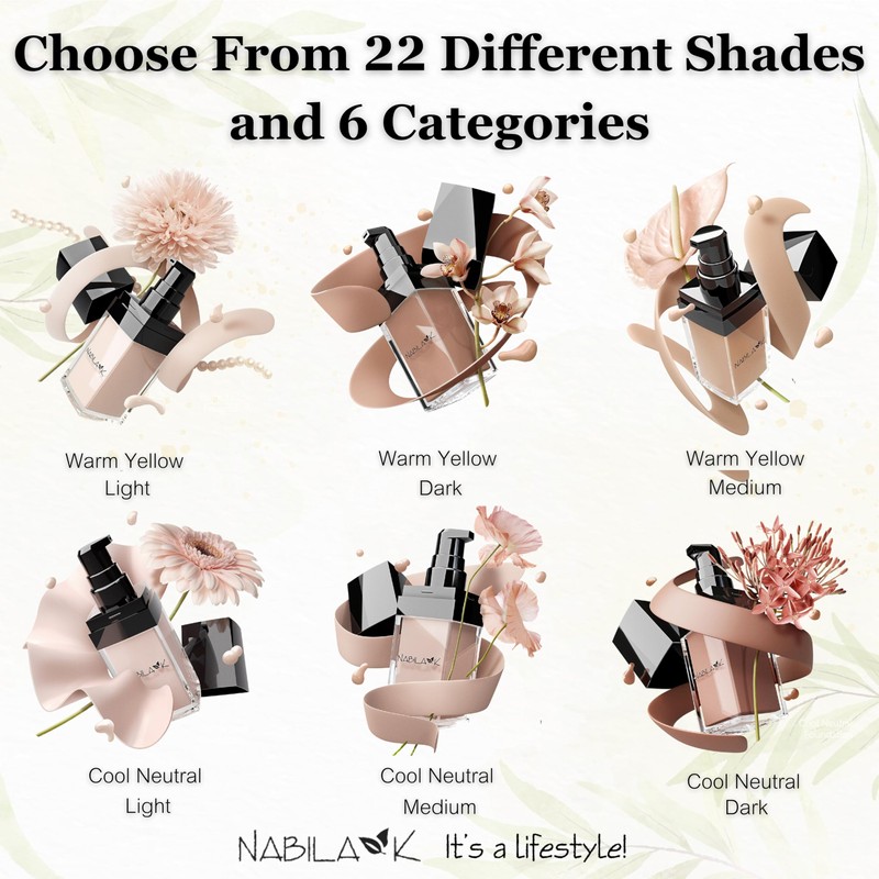 - This water-based formula applies easily to the skin and blends beautifully to enhance your natural features. Our foundation dries down to a matte finish for long-lasting, all-day wear. Put your best face forward with Nabila K Flawless Foundation.