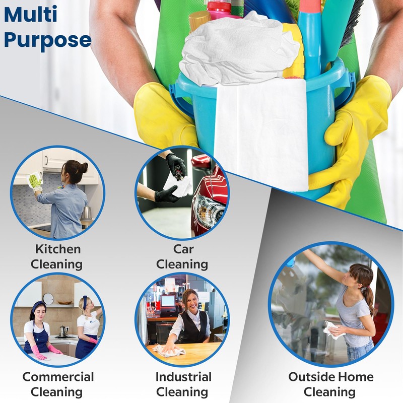 - White cleaning rags are multipurpose which means they can be used for home cleaning, dish cleaning, garage cleaning, dusting, car detailing, toilet cleaning, staining, paint jobs, and more.