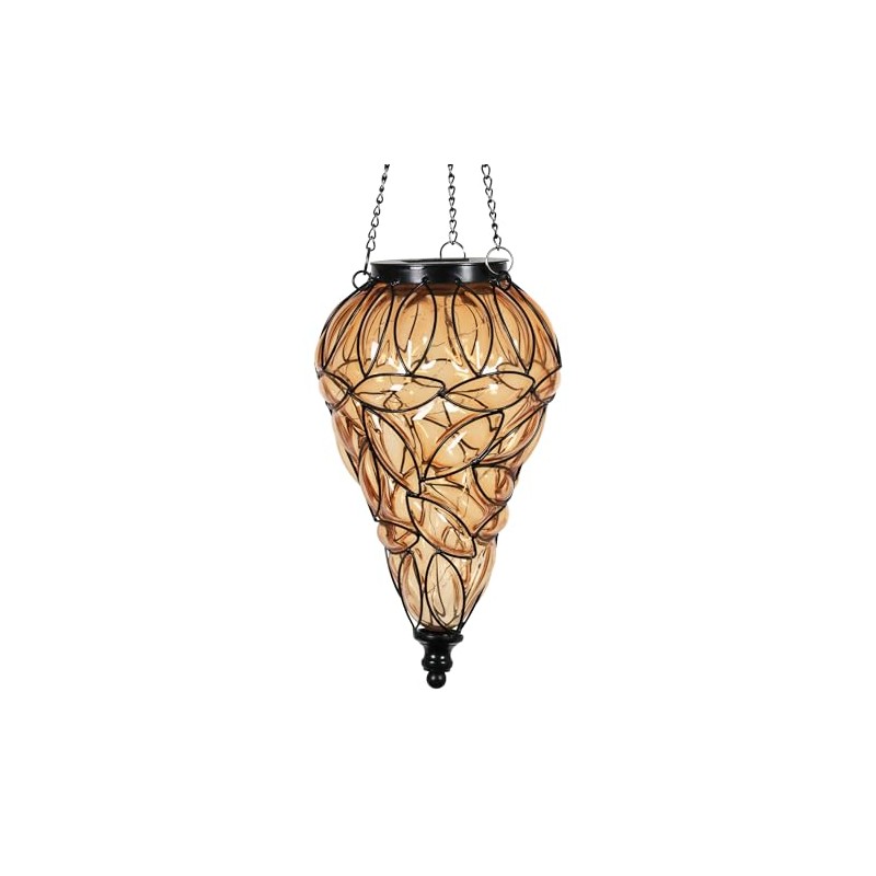 Naboher Outdoor Garden Solar Lights, Tear-Shaped Glass and Metal Hanging Lantern, 15 Firefly LED Lights, 7 x 24 Inch,(Amber)