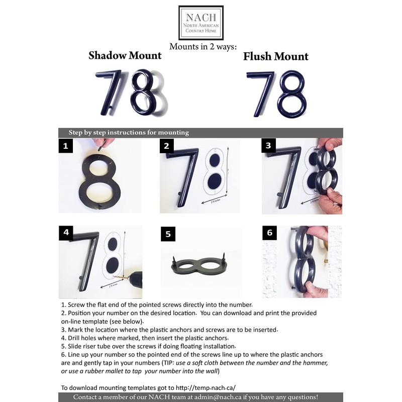- Downloadable Home Address Numbers Mounting Template - Free mounting templates are availabe for this series of house address numbers at the official NACH website. Mount these reflective house numbers for outside with ease using these printable templates