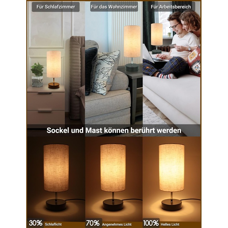 - 【Exquisite Beleuchtung für zu Hause】 Hochwertiger Stofflampenschirm mildert das Licht und schützt Ihre Augen. Die Basis der nachttischlampe dimmbar besteht aus Metallmaterial und einer Oberflächenschicht aus Holzmaserung. Die Nachtlicht touch dimmbar kann Ihr Zuhause, Wohnzimmer, Gästezimmer, Arbeitszimmer, Lesezimmer, Kinderzimmer usw.