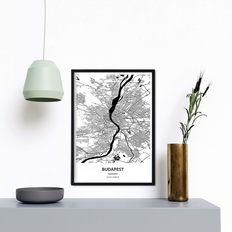 Nacnic Budapest - Hungary Map Poster with Leaves Cities in Europe with Seas and Rivers in Black A4 Size