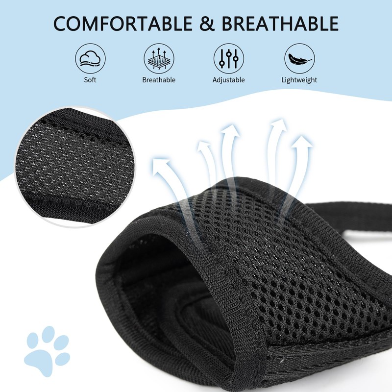 - Better socialization, unlike traditional heavy dog mouth covers, our dog mouth cover reduces the fear of people/dogs seeing your furry baby. Wearing this dog mouth cover will make your dog appear more approachable and friendly in public places.