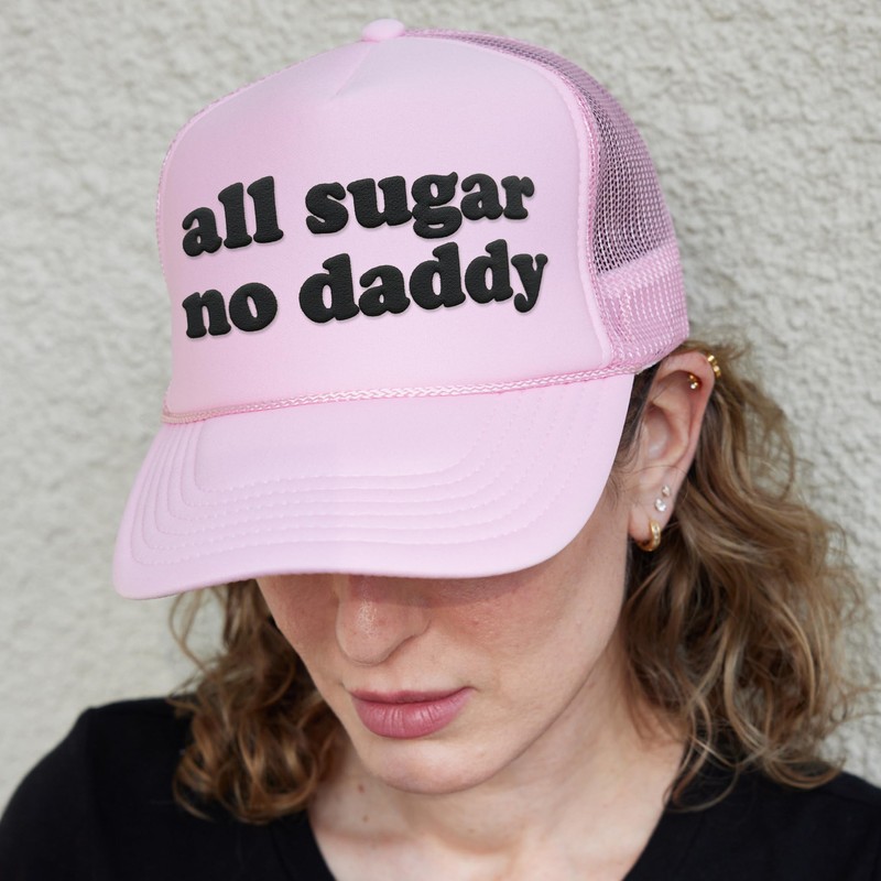 - All Sugar No Daddy Puff Print Trucker Hat Foam Vinyl Adjustable Trucker Hat Jade/White/Jade #314