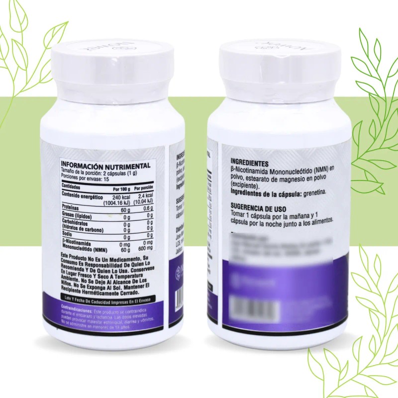 Nad+ es un suplemento diseñado para aumentar los niveles de NAD+ (nicotinamida adenina dinucleótido), una coenzima vital que juega un papel clave en la producción de energía celular y la reparación del ADN. Con una dosis de 500 mg por cápsula y una presentación de 60 cápsulas sin sabor, este producto es ideal para quienes buscan mejorar su vitalidad y promover un envejecimiento saludable.