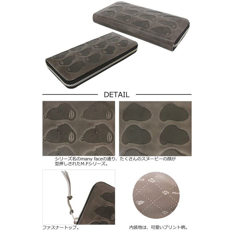 - ■ Peanuts M.F (many face) series with snoopy embossing using cowhide leather that is smooth to the touch. As the name of many faces, we've designed it with embossing and embossing of many Snoopy faces. The interior has plenty of storage for bills, coins, and cards. The coloring is also available in 4 mature and muted colors