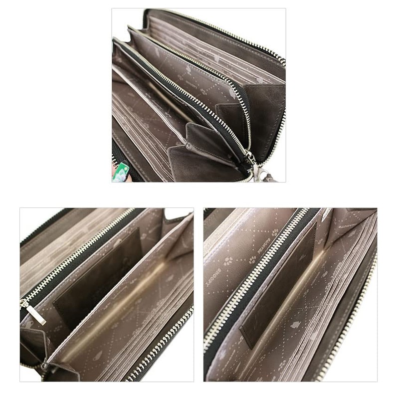 Nadaya Peanuts M.F (many face) Leather Long Wallet, Round Zipper, Men's, Women's, Genuine Leather, Cowhide Leather, Large Capacity, Card Storage, Embossing, SNOOPY No.73056 Long Wallet with Round