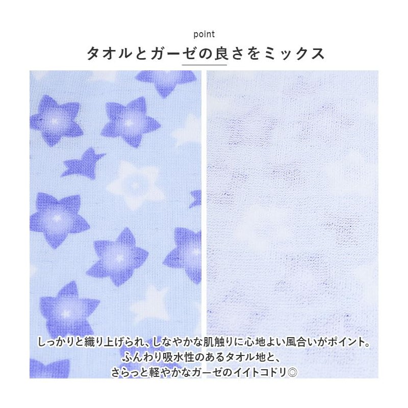 - Tightly woven for a supple feel and a comfortable texture. It is made of soft and absorbent terry cloth and light gauze