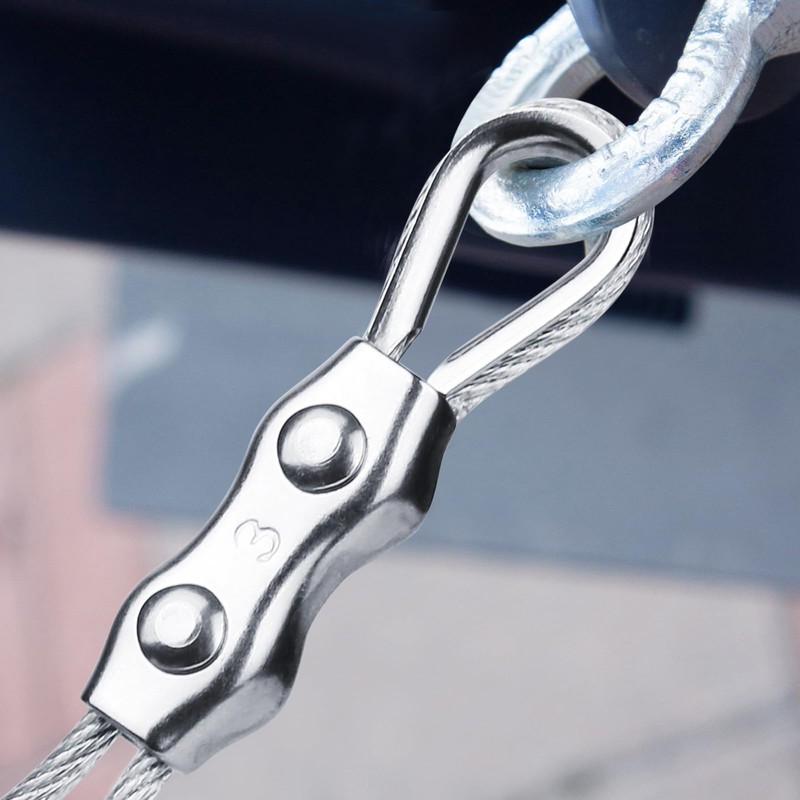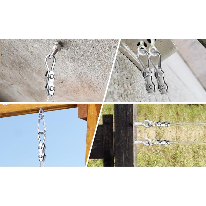 - 【Multifunctional use】 Stainless steel wire rope clamps are used in stainless steel cables, awnings, ceilings, clotheslines, flagpoles, banners and anchors for fitness equipment. Steel cable clamps are also frequently used in industry, construction, transport, shipping and construction sites.