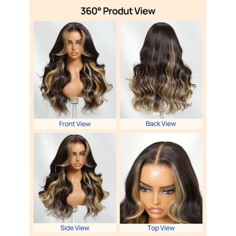 - 【Pre-Everything Glueless Wig】 Nadula Bye Bye Knots 7x5 HD Lace Front Wig with Blonde Highlights—Pre-Cut, Pre-Plucked, and Pre-Bleached for an effortless, ready-to-wear look. No glue, no gel—just put it on and go!