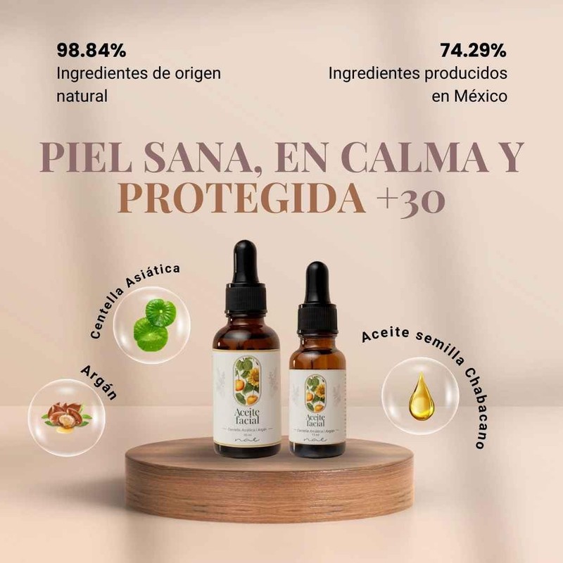 - 🛡️ Aceite facial reparador con centella asiática, argán y biotecnología marina avanzada. Reduce irritación, nutre profundamente y fortalece la barrera cutánea de pieles sensibles.
