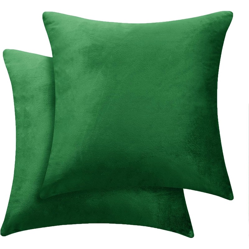 NAFAY LIVING Velvet Cushion Covers 45cm x 45cm Green Pack of 2 - Square Throw Pillowcases for Sofa Bedroom Decorative Cushion Cover with Invisible Zipper 18x18 inches