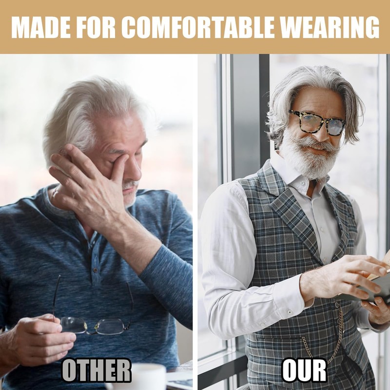 Lightweight:The pair glasses weight 26.0g.No pressure on nose and ears,comfotable to wear.