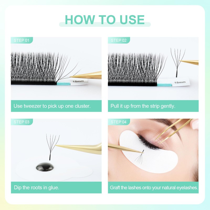 - Stronger bond and hold: compared to individual eyelashes, these pre-made W-shaped fans have a long stem that can increase the contact surface with natural eyelashes. Therefore, they provide a stronger bond and a stronger hold of the eyelashes.