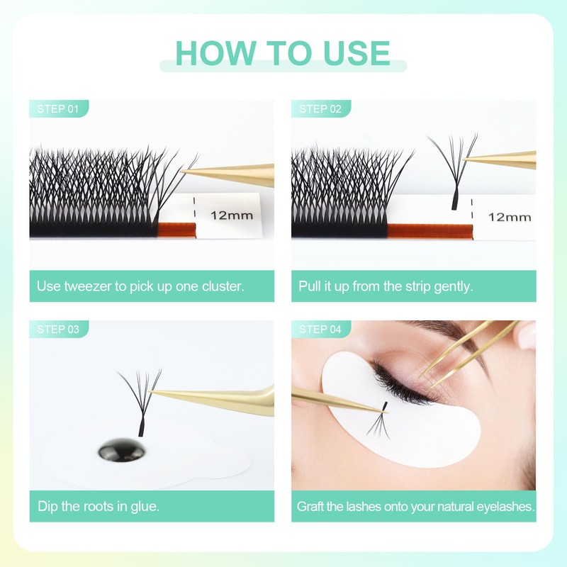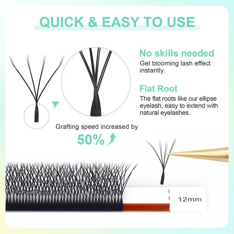 - DOUBLE TIPS 4D W LASH: The roots of the 8 individual eyelash extensions are bonded together like a W shape. These are called W clover lash extensions. It's very easy to make fans when grabbing with tweezers, you can quickly get 8D fans cluster without any skills.