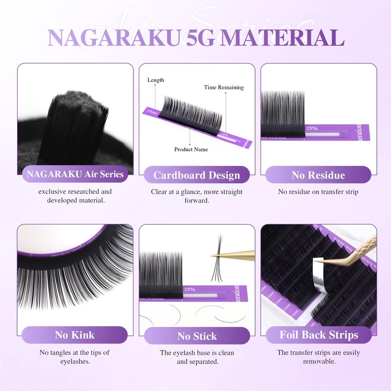 • Premium Quality Assurance: Just like our previous generations, we are committed to using top - notch NAGARAKU exclusive materials. Each single lash is 100% handmade and meticulously inspected to ensure the highest quality. Our 5th - generation lashes are SGS and MSDS certified, guaranteeing a safe and comfortable wearing experience