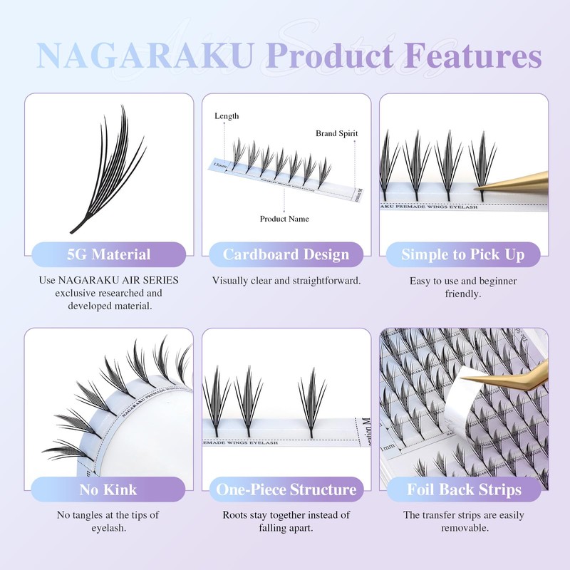 - High-Quality Materials: Crafted with NAGARAKU exclusive premium materials, these air series eyelash extensions are not only great for creating a show - stopping look but also built to last. Our premade lash are ultra light and graceful, just like a plume fluttering in the wind, ensuring long-lasting beauty without compromising comfort.