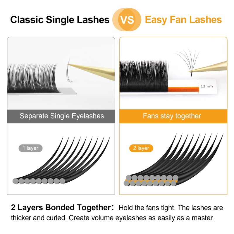 - ★ Clean base - The eyelash roots are connected together when picking. It has no excess glue on the eyelash roots, making a natural effect. The volume fans do not shrink after application.
