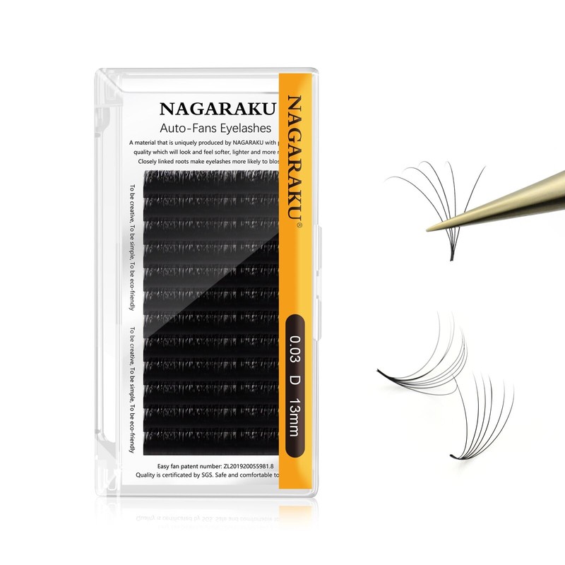 NAGARAKU Russian Volume 3D, 4D, 5D-20D, Lightly Dense, Easy Fan Eyelash Extensions, Artificial Eyelashes, 12 Rows, Black (0.03 mm Thickness D Curl, 13 mm)