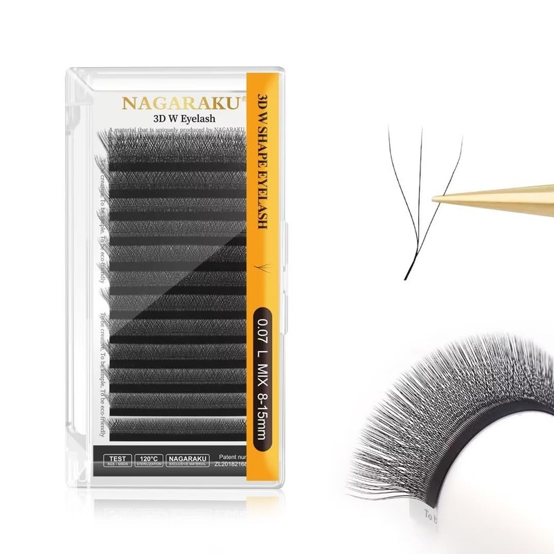 - đă3D W LashăMaterial: NAGARAKU EXCLUSIVE MATERIAL; Color: Matte Black; 0.07mm L Curl 8-12mm, 12 rows mixed lash tray, it is automatically formed by removing the clip. Foils wallpaper is convenient for picking up and transfer, there is no residue on your lashes tile.