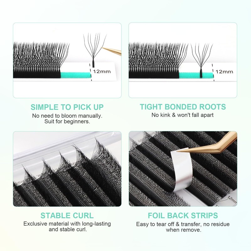 - EASY TO USE: Foils wallpaper is convenient for picking up and transfer, there is no residue on your lashes tile. Even if you are a beginner, you can easily use the W premade fans eyelashes. You can choose the satisfactory w-shaped eyelashes extension according to your needs.