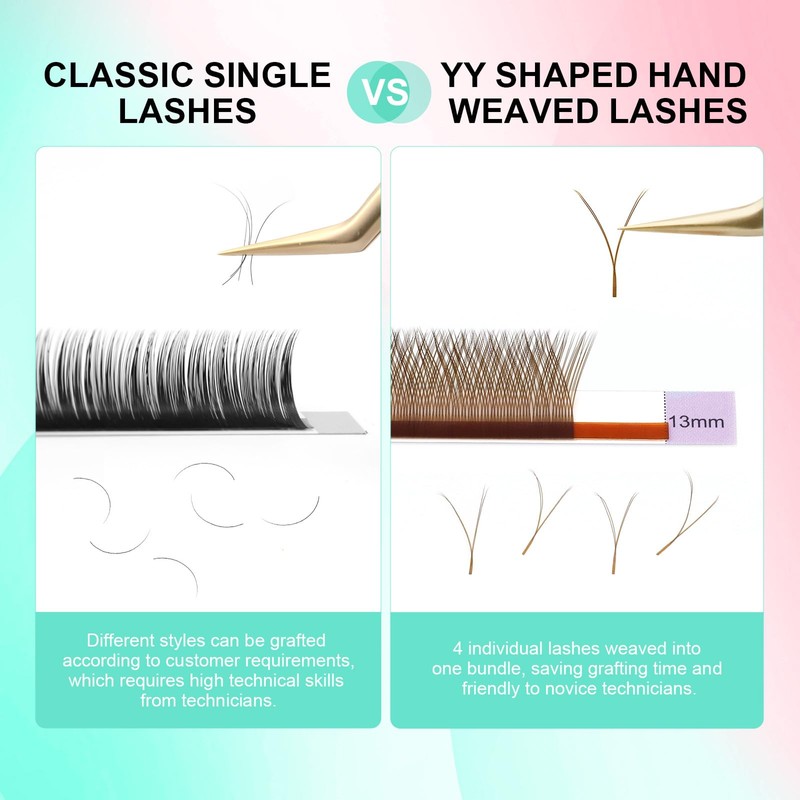 • YY LASH: This Y-shape eyelash has 4 extensions bonded together which is very simple to create fans when grabbing with tweezers, no any skills needed. Get a 4D cluster instantly.