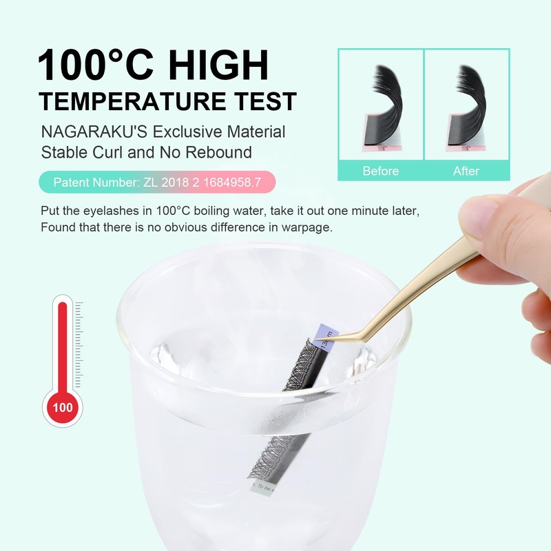 - Stable Curl: Put the eyelashes in 80℃/176°F boiling water take them out one minute laterand found that there isno obvious difference in curt.