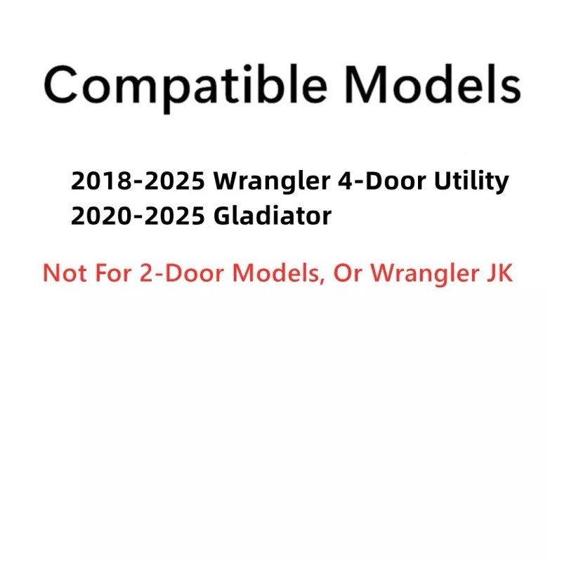 - Interchange Part Number: Fit 2018-2025 Jeep Wrangler 4 Door Utility, 2020-2025 Jeep Gladiator 4 Door Crew Cab
