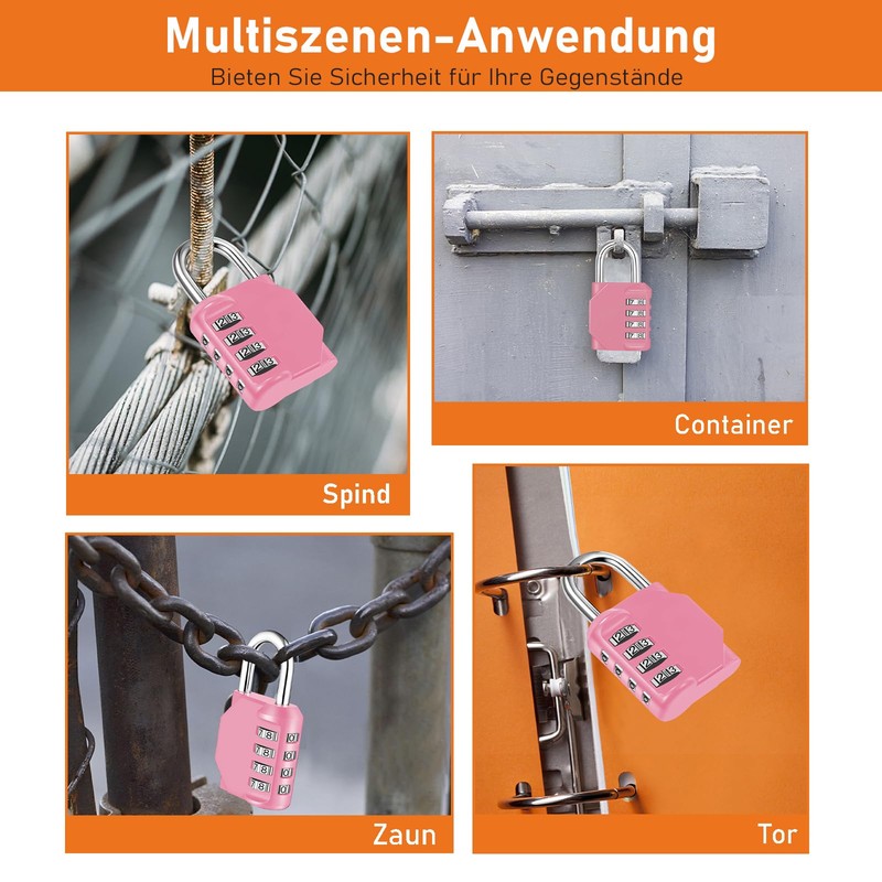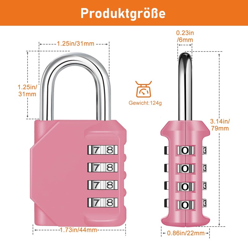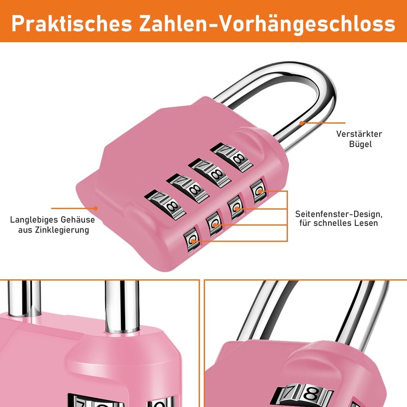 - 1. HUMAN DESIGN: The combination lock pink with side window allows quick identification and easy reading of the four-digit code combinations. Its reasonable size and moderate weight guarantee convenient use, storage and portability.
