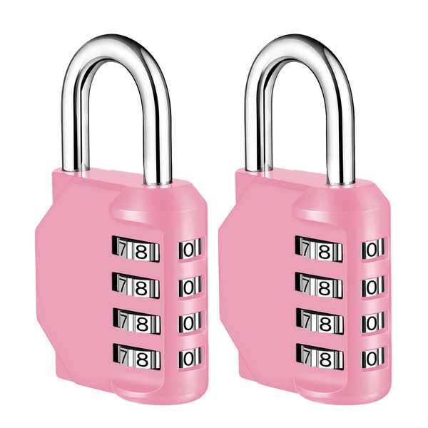 NAGE Lock with Combination Code, Padlock with Combination Code, Combination Lock 4 Digit Locker Lock for Gym and School, Padlock Numbers Weatherproof for Garden Fences (2 Pieces, Pink)