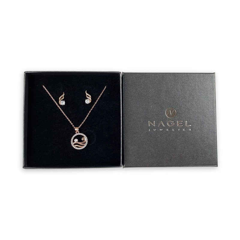Nagel Jewellery Silver necklace with pendant, stud earrings, dancing waves, made of 925 sterling silver, white gold or rose gold plated, with brilliant cut zirconia, individually or as a set, Sterling