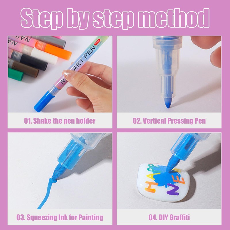 - Einfach zu benutzen: Nagellack stifte set Im Vergleich zu Nail Art Pinseln sind unsere Nail Art Pens einfacher zu benutzen, bequemer und besser für Anfänger geeignet. Schütteln Sie den Stift einfach leicht, um die Tinte zu mischen, drücken Sie dann auf die Spitze, damit die Tinte herausfließt, und beginnen Sie mit der Anwendung. Setzen Sie die Kappe wieder auf, wenn Sie fertig sind.