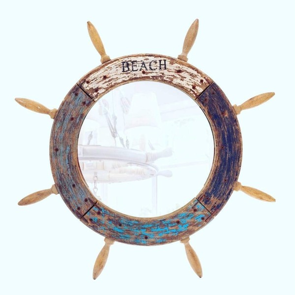 Nagina International Large Antique Rusty Wooden Mirror Ship Wheel - Nautical Home Decor (30 Inches)