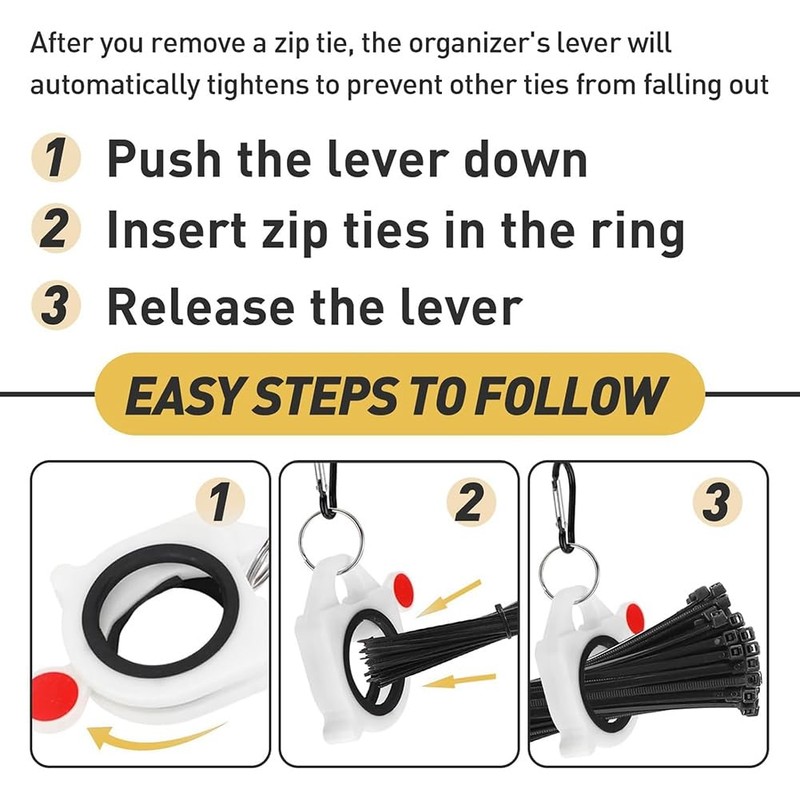 - Versatile Applications: Zip tie holder organizer is perfect for electrical repair, storage, home, office, manufacturing, automotive, agriculture, and outdoor gardening. It adapts seamlessly to various environments. Featuring a carabiner design, it can easily be hung anywhere-on belts, tool bags, backpacks, cargo, or carts-providing a convenient way to manage and secure cables, wires, zip ties, and stainless-steel ties. Enjoy practical solutions that enhance both your work and !