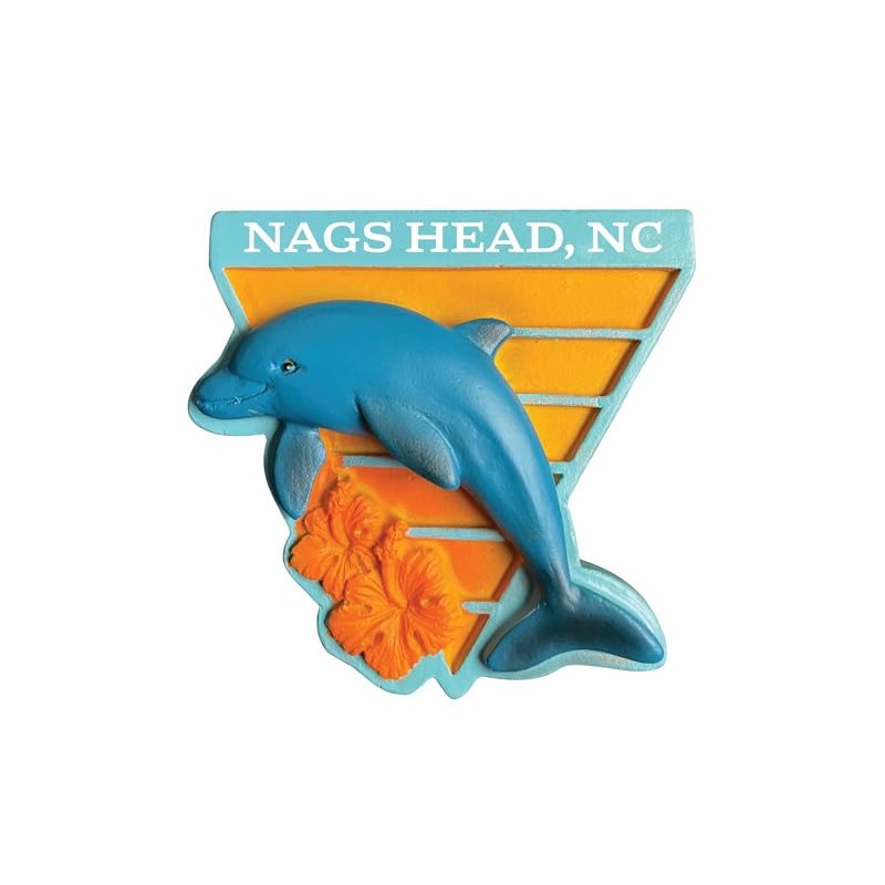 Nags Head North Carolina Beach Souvenir Hand Painted Resin Dolphin Refrigerator Magnet Single