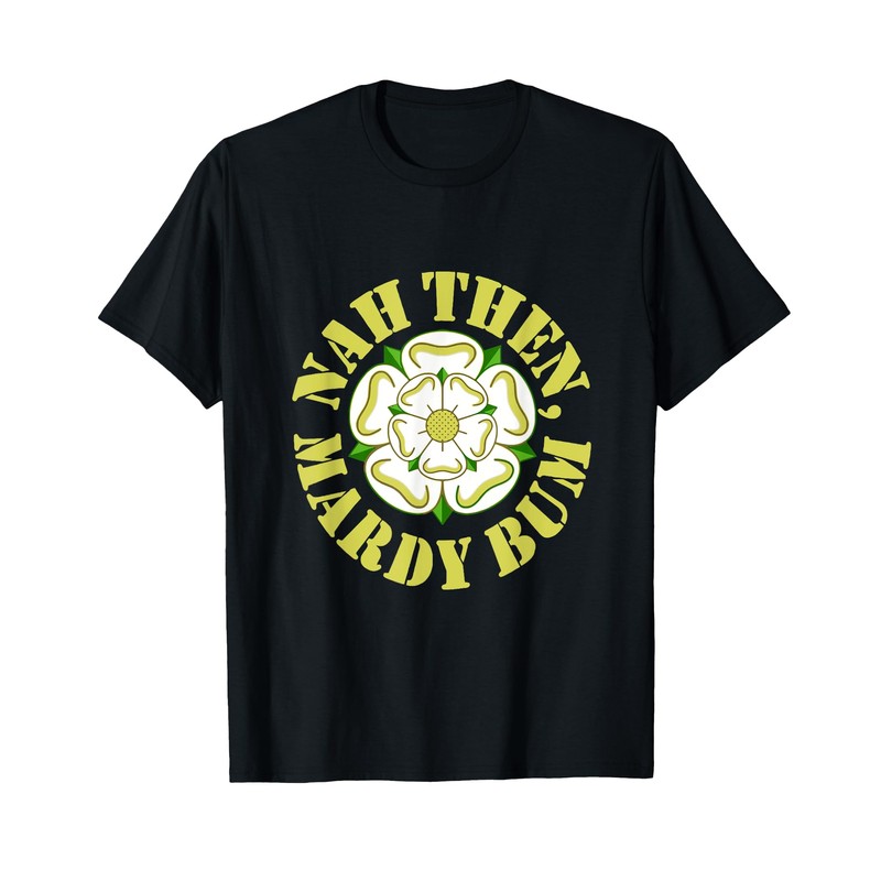 Nah Then Mardy Bum Yorkshire Slang Dialect Rose Yellow Text T-Shirt, black