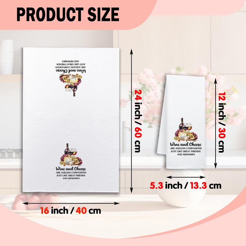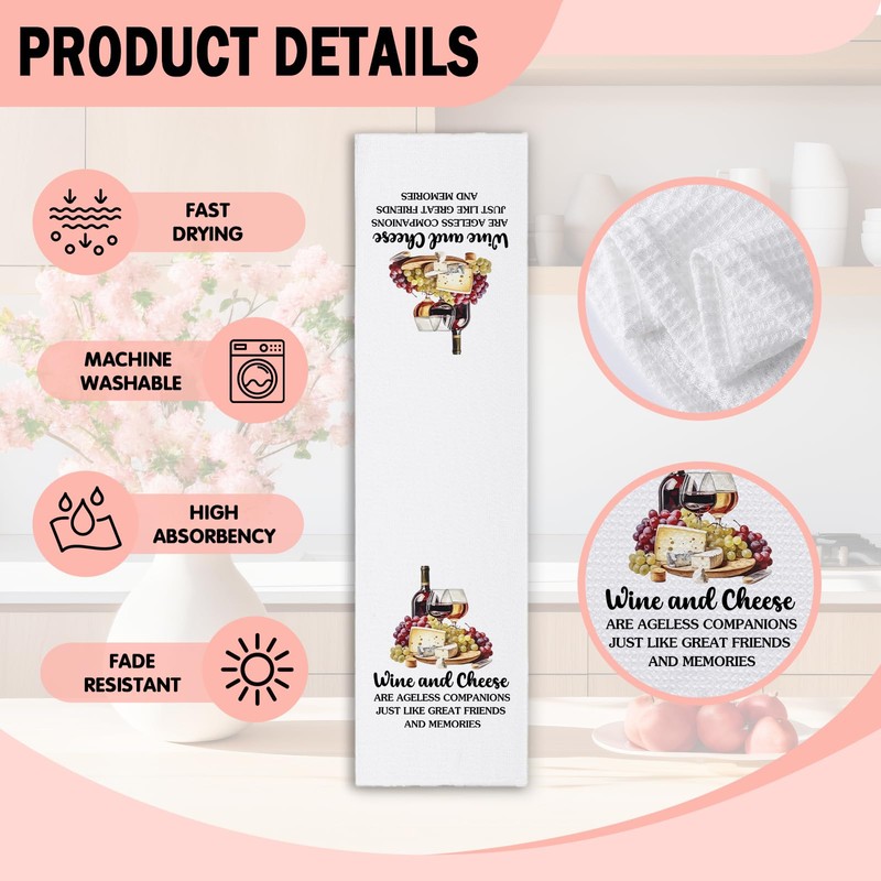 - UNIQUE GIFT: "Wine and Cheese are Ageless Companions Just Like Great Friends and Memories" - With funny designs and practical functionality, our kitchen towel makes a unique gift for your family and friends. Great for Housewarming, Birthday, Christmas, Mother's Day or any special occasion
