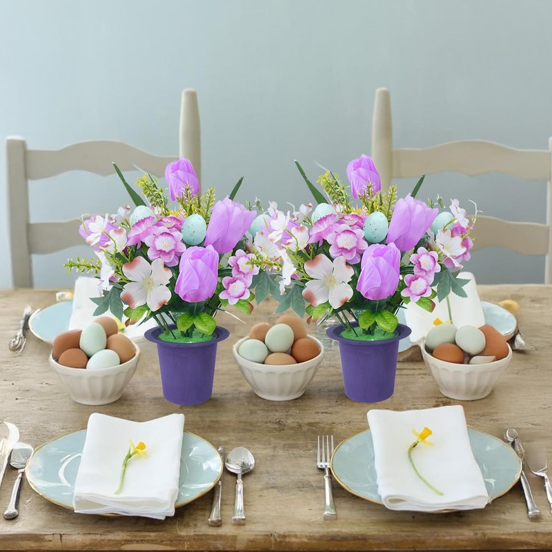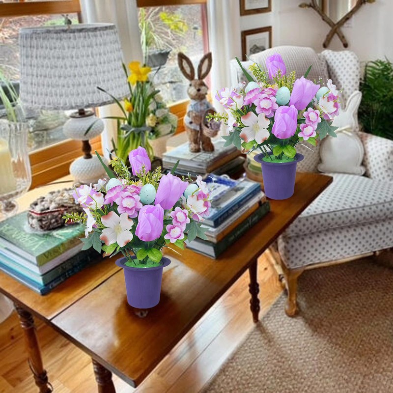 - Product Information:You will receive 2 purple tulip potted flowers with Easter eggs, full height is 35 cm/13.8 in, the pot is 9.5 cm/3.74 in, this mini Easter potted plants suitable for Easter Centerpiece Table Decorations