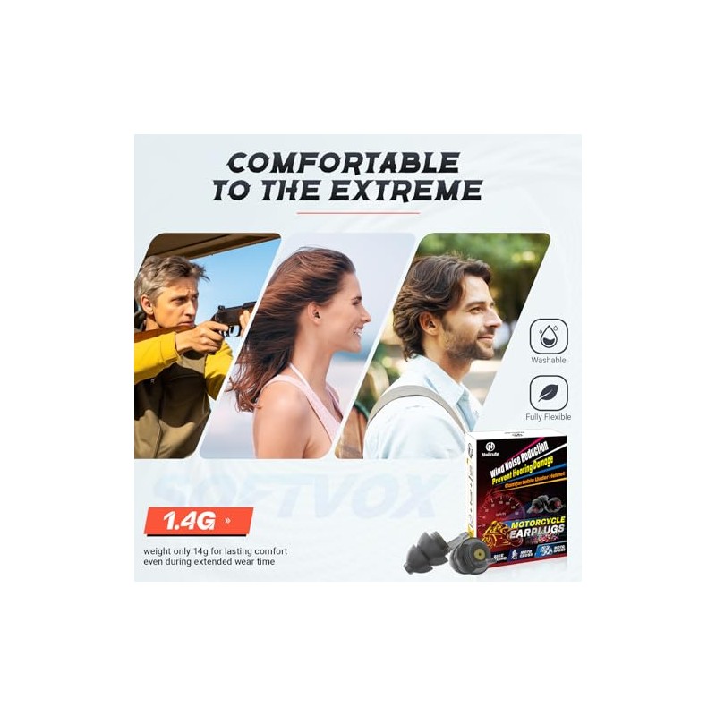 - Reusable Noise Cancelling Earplugs The high quality noise blocking earplugs are Washable, Durable & Reusable, easy to keep your ear plugs safe and clean. Perfect for motorcycle riding, racing, touring, commuting, motocross, focus, noise sensitivity, airplane, travel, work, noise reduction, sound blocking and sporting events. Enjoy life from protecting your ears!