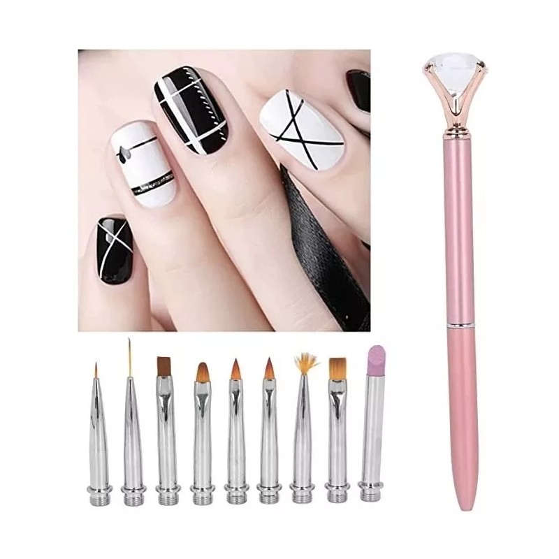 Nail Art Pincel Diamante Con Puntas Intercambiables Uñas Esculpidas