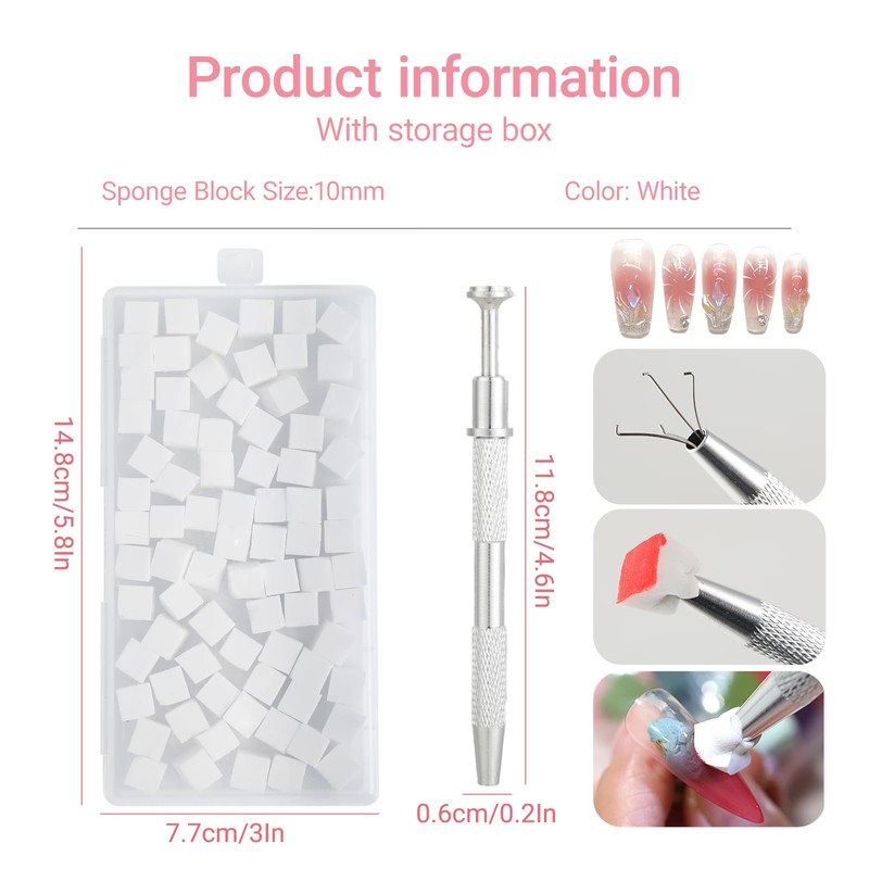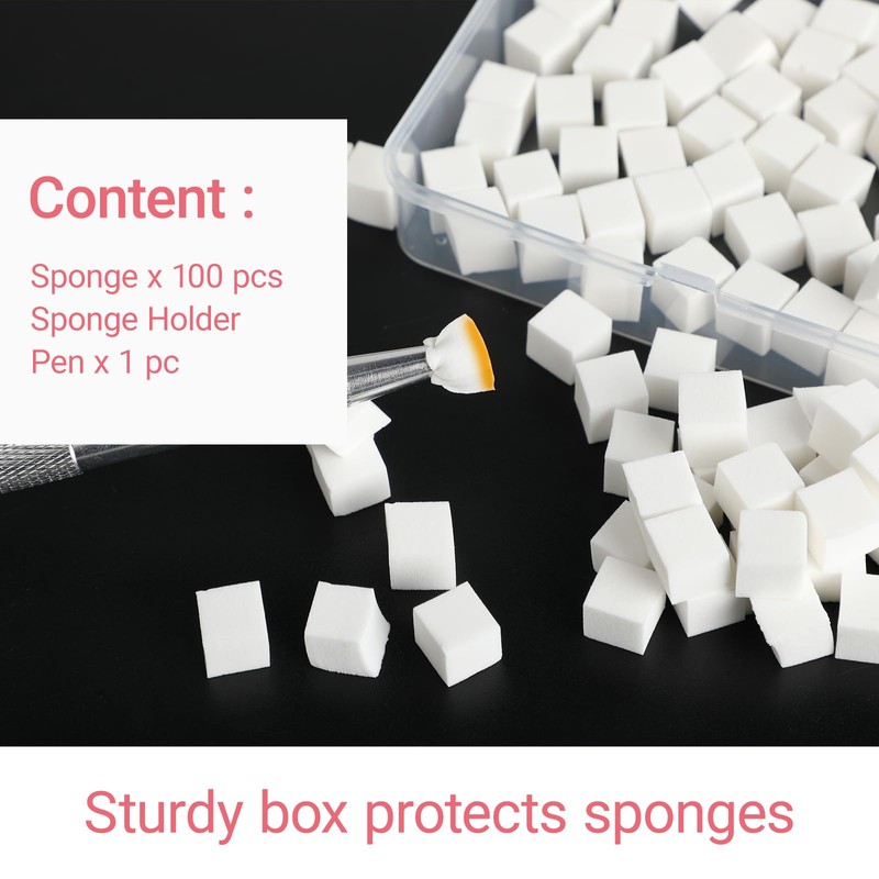 WQDD STANPET Make Your Own Nails - Pack of 100 Nail Art Sponges with Metal Gripper, Sponge Brush & Sponge Brush Applicator for Gradient Nail Art Designs, Manicure Accessories for Creative Nail Art