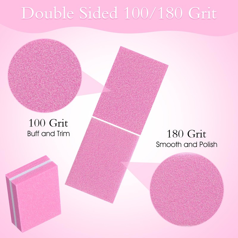 - Double Sided 100/180 Grit: so you can choose based on your preference, where the coarse 100 grit is used to file down the uneven surface of the nail, and the fine 180 grit side used to polish the grease on the nail surface, making it easy to buff and smooth out the rough edges of your nail, ideal for both professionals and at-home users, providing a salon-quality nail buffing experience in the comfort of your own home;