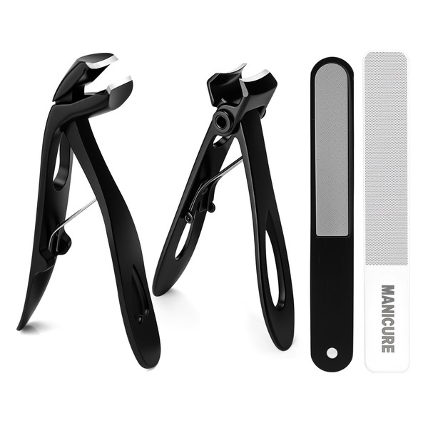 Nail Clippers for Seniors Thick Toenails, Upgrade Wide Jaw Fingernail Clippers and Angled Head Toenail Clippers, Glass Nail File Kit, Sharp Fingernail Clipper Cutter for Men, Women&Pregnant,Black