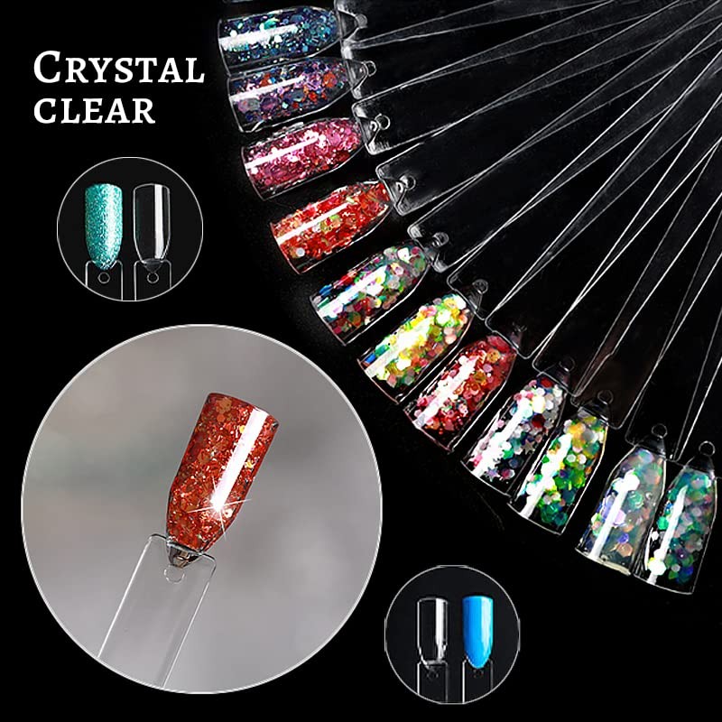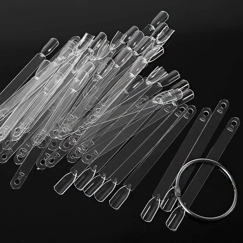 Nail Colour Display" Clear Nail Swatch Sticks, Salon Nail Display Tips, Nail Samples Sticks for Nail Art Design Nail Practice | Fan Shape, with Metal Ring, Pack of 50