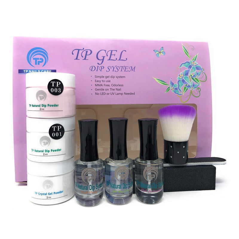 - Your gel dip nails kit includes nail prep, gel dip & top, gel activator, as well as 2 oz. crystal gel powder and pink & white powders. You also get a dust brush, a nail file and a buffer to create the perfect finish.