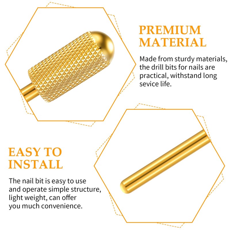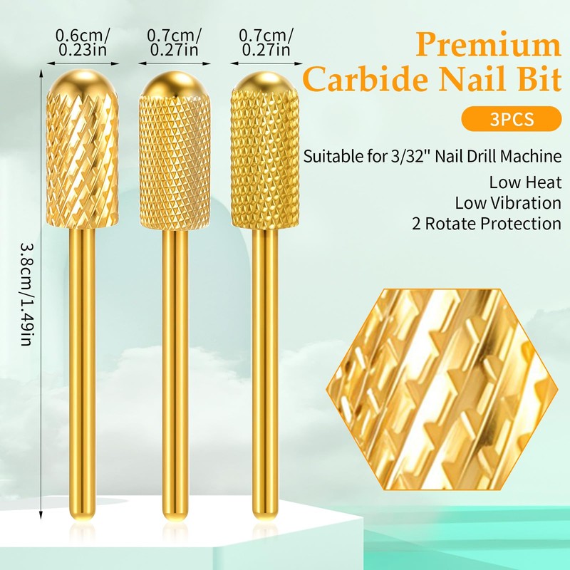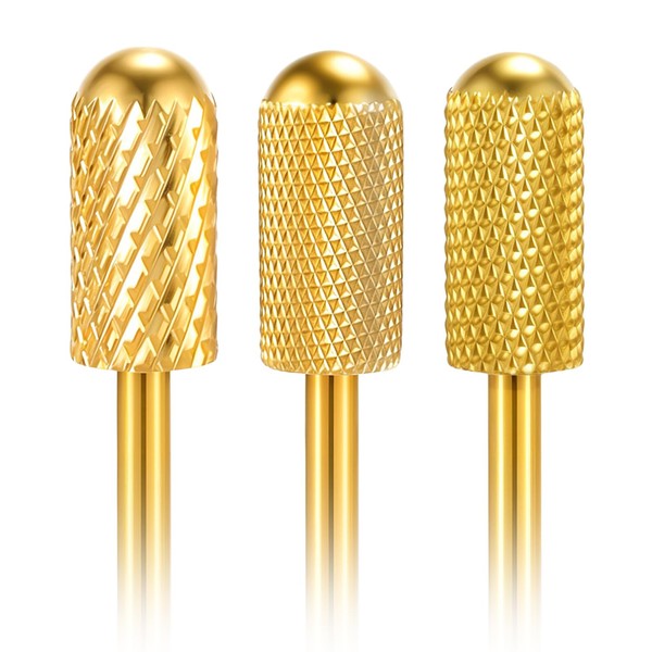 Nail Drill Bit Set,3 Pcs Safety Bits for Nails Drills,Carbide Nail Drills Bits for Manicure Pedicure Cuticle,Smooth Round Nails Drill Bit(XC & M & XF Gold)